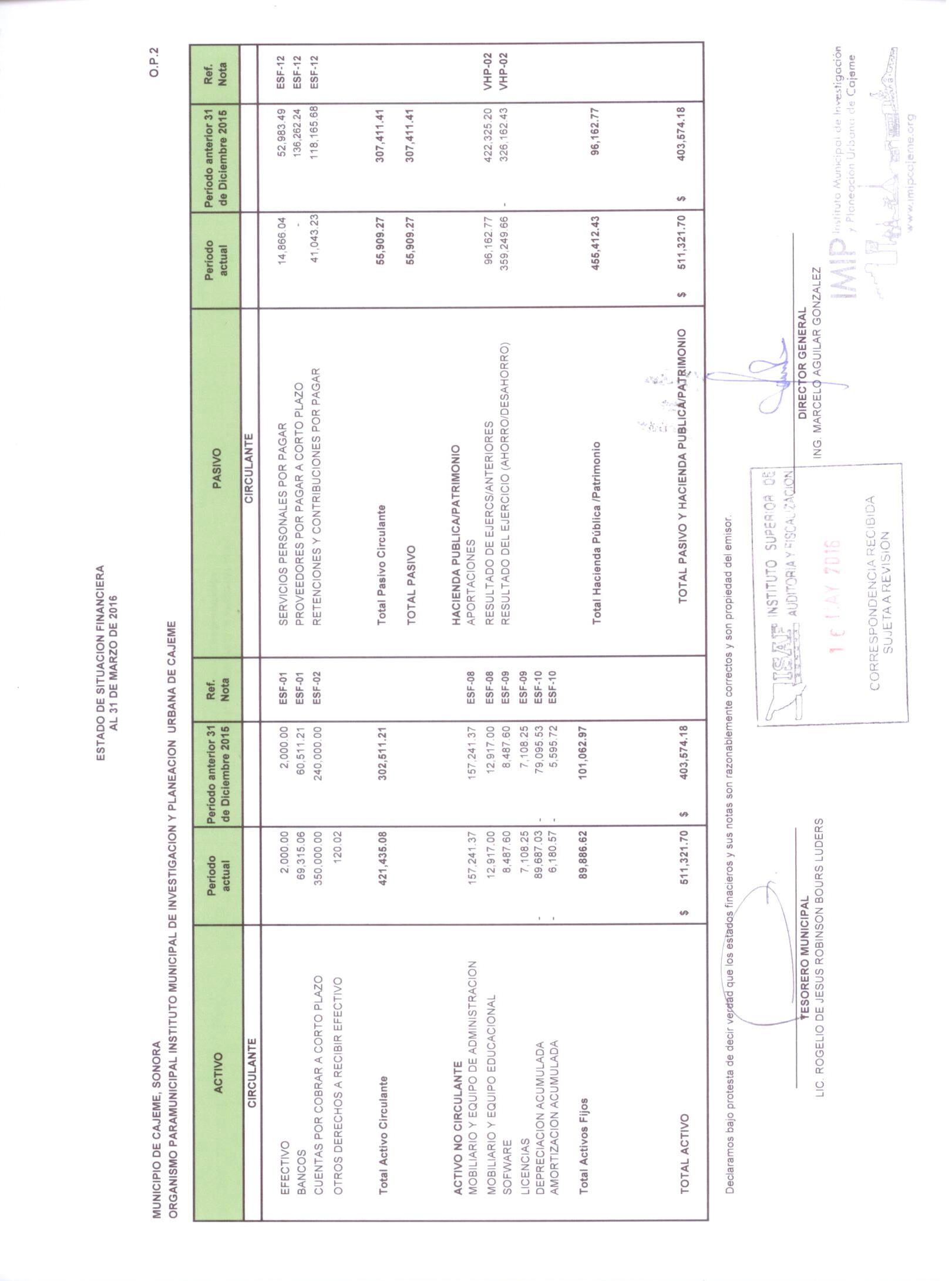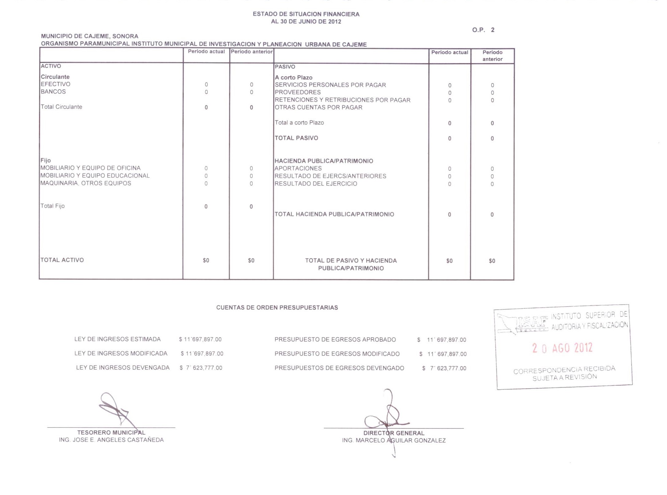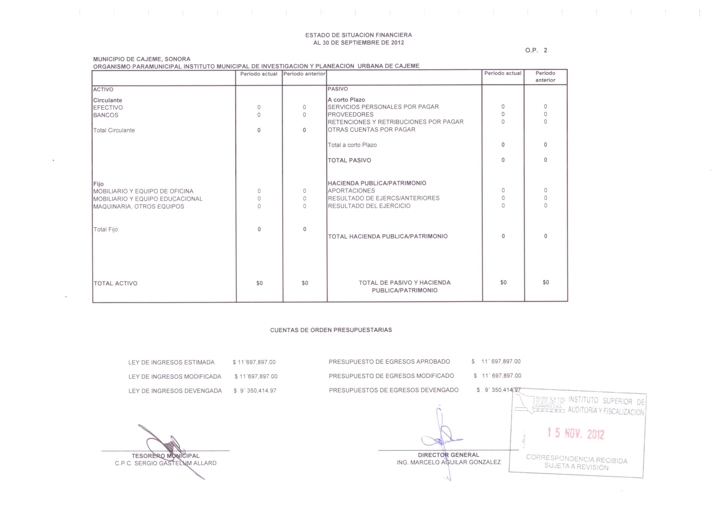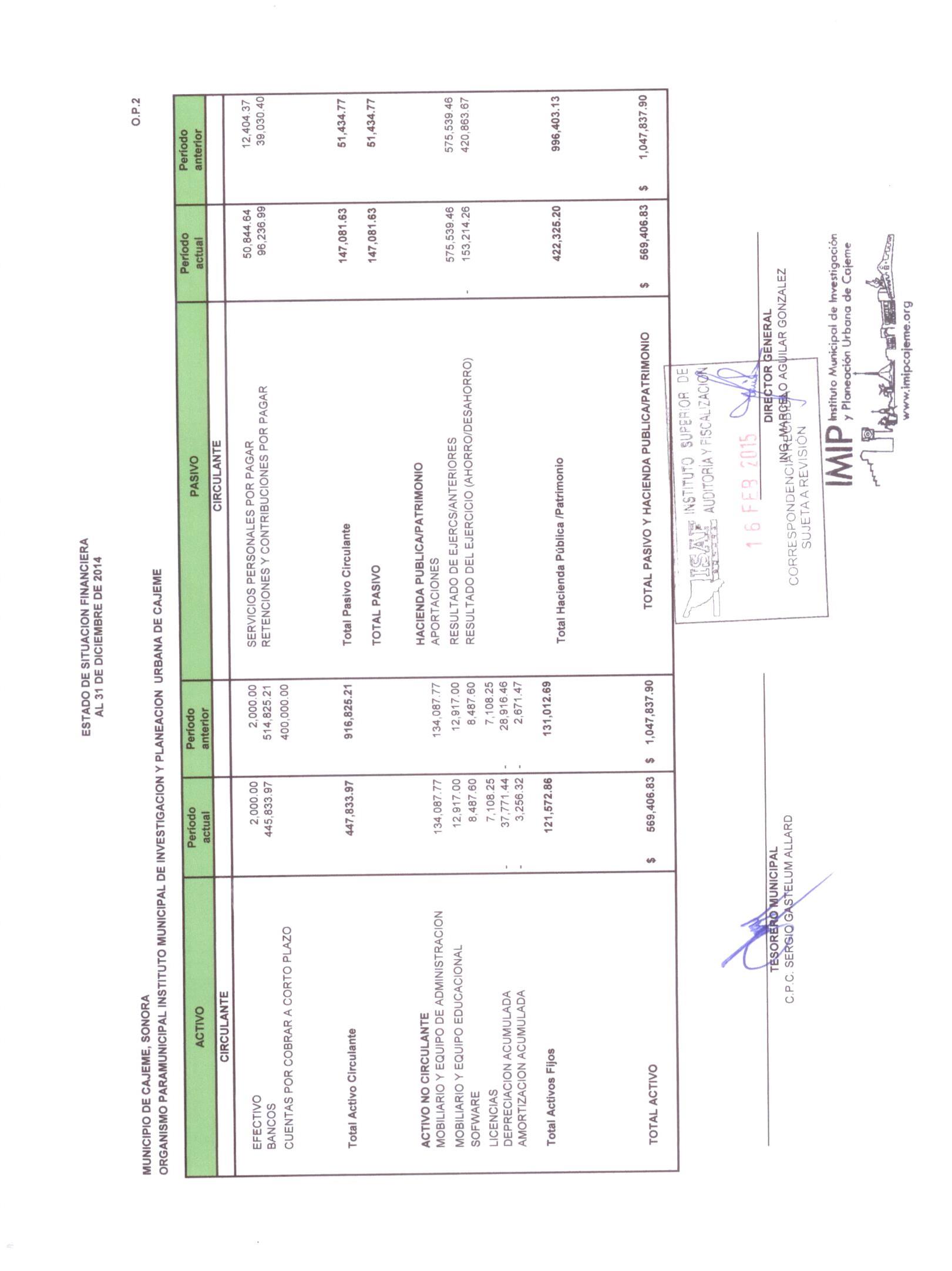 XII. Balance general y estados de resultados