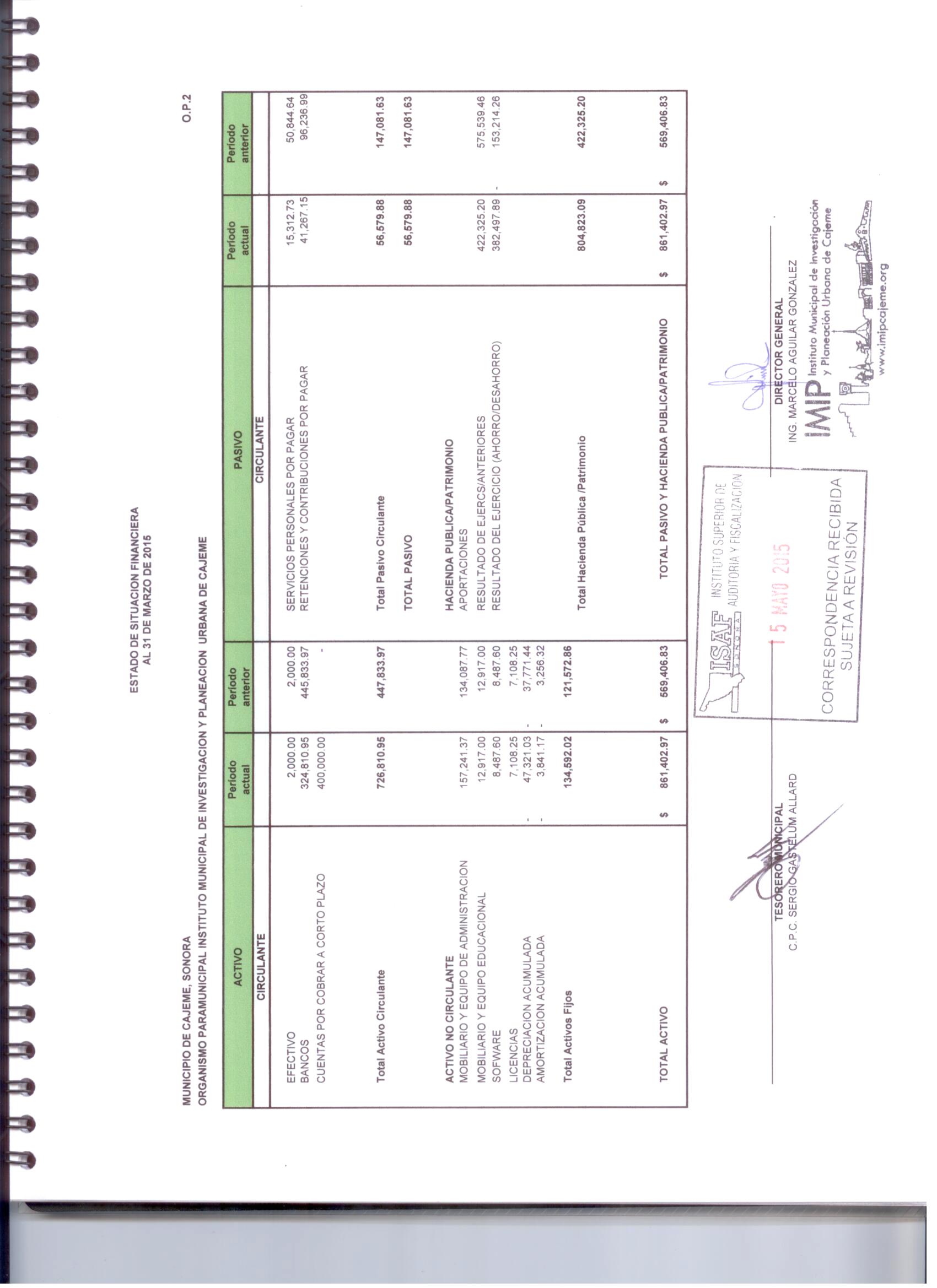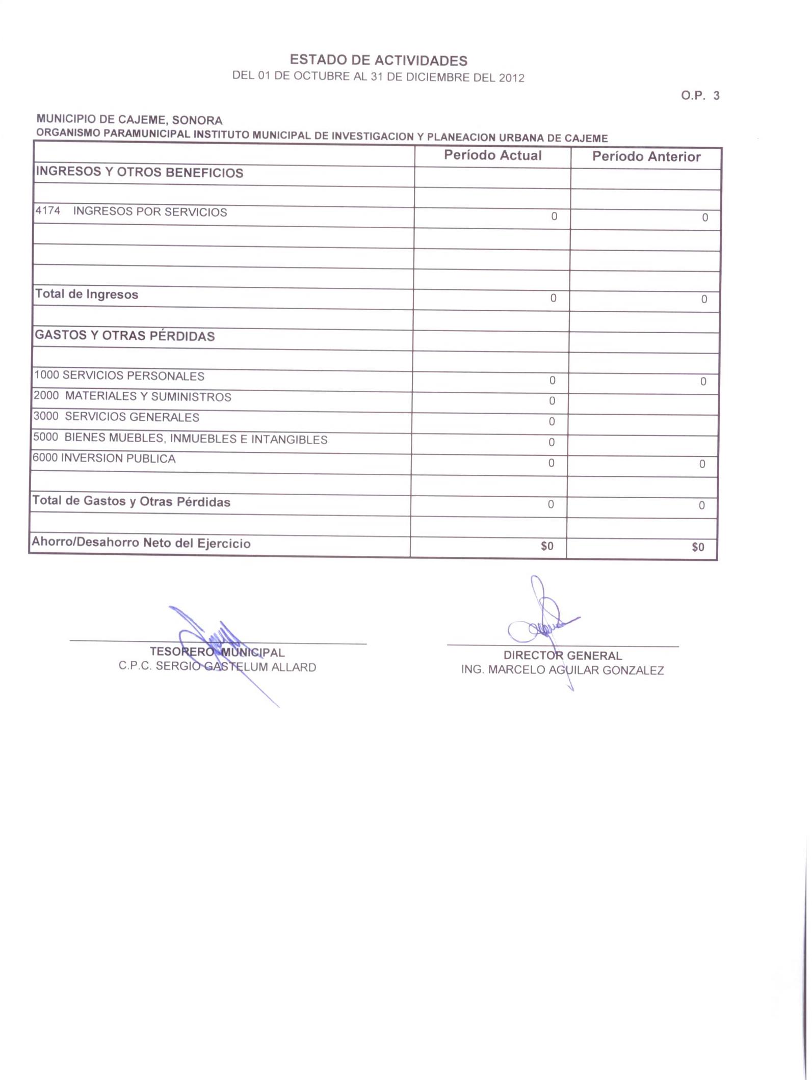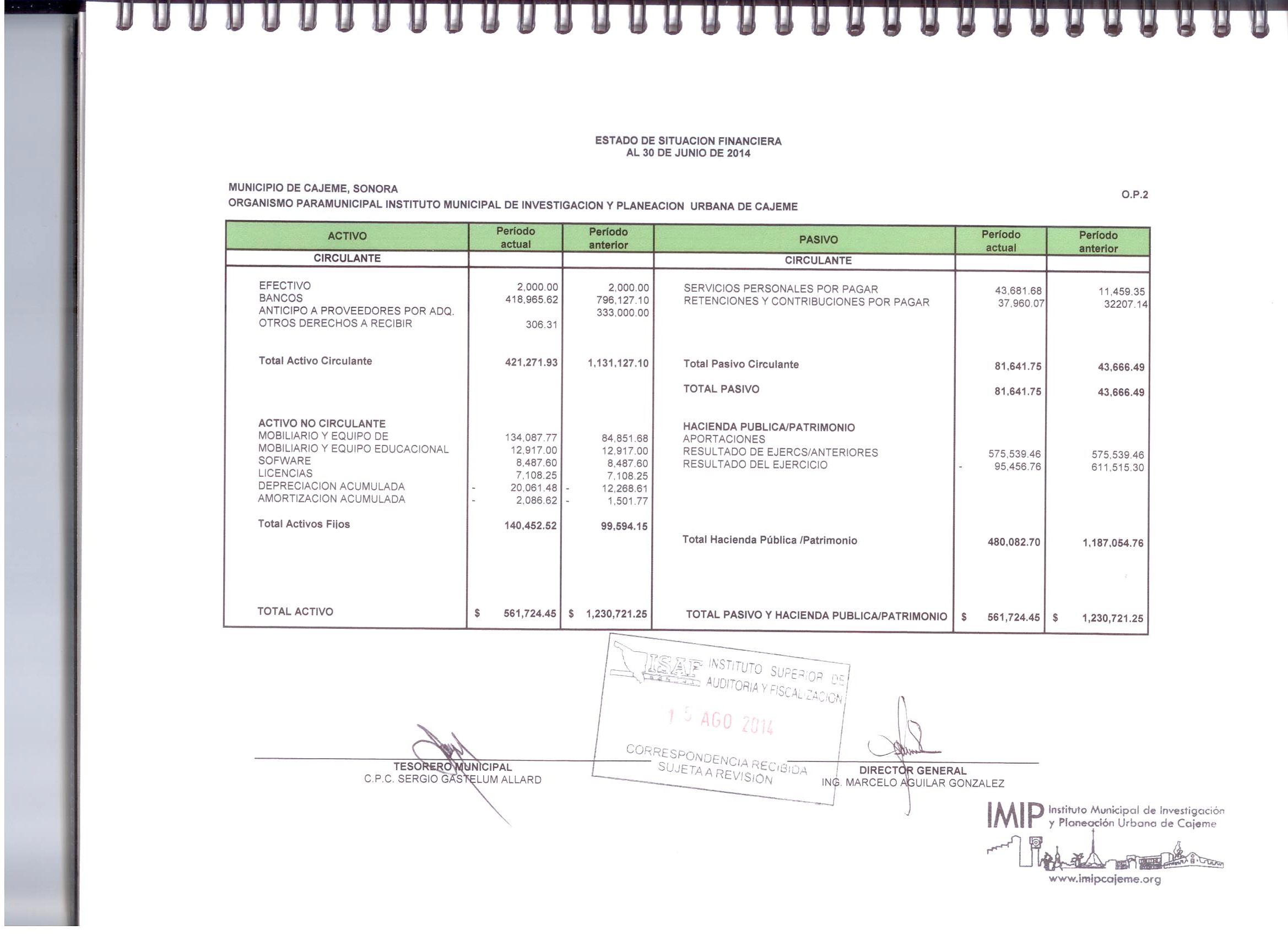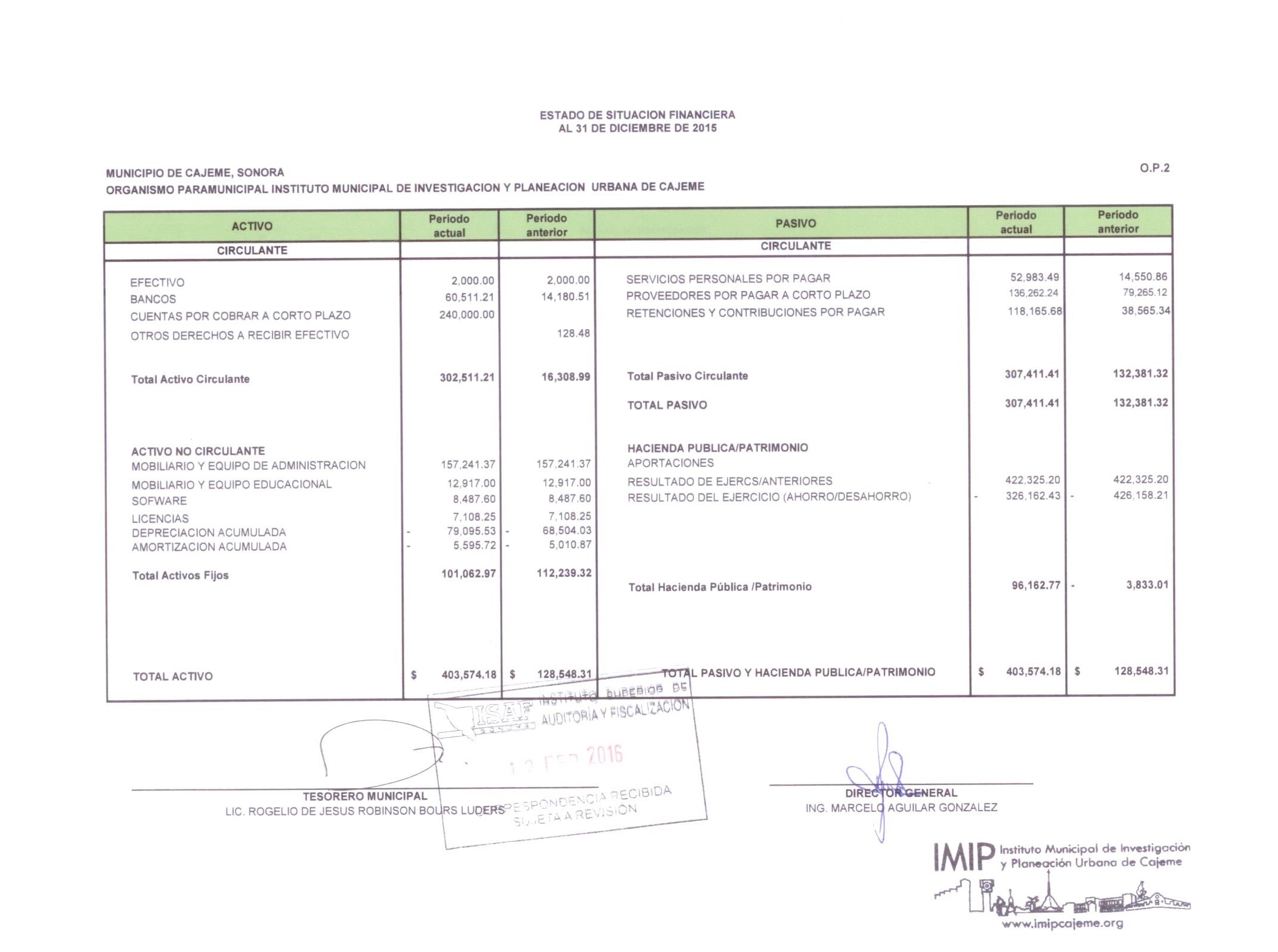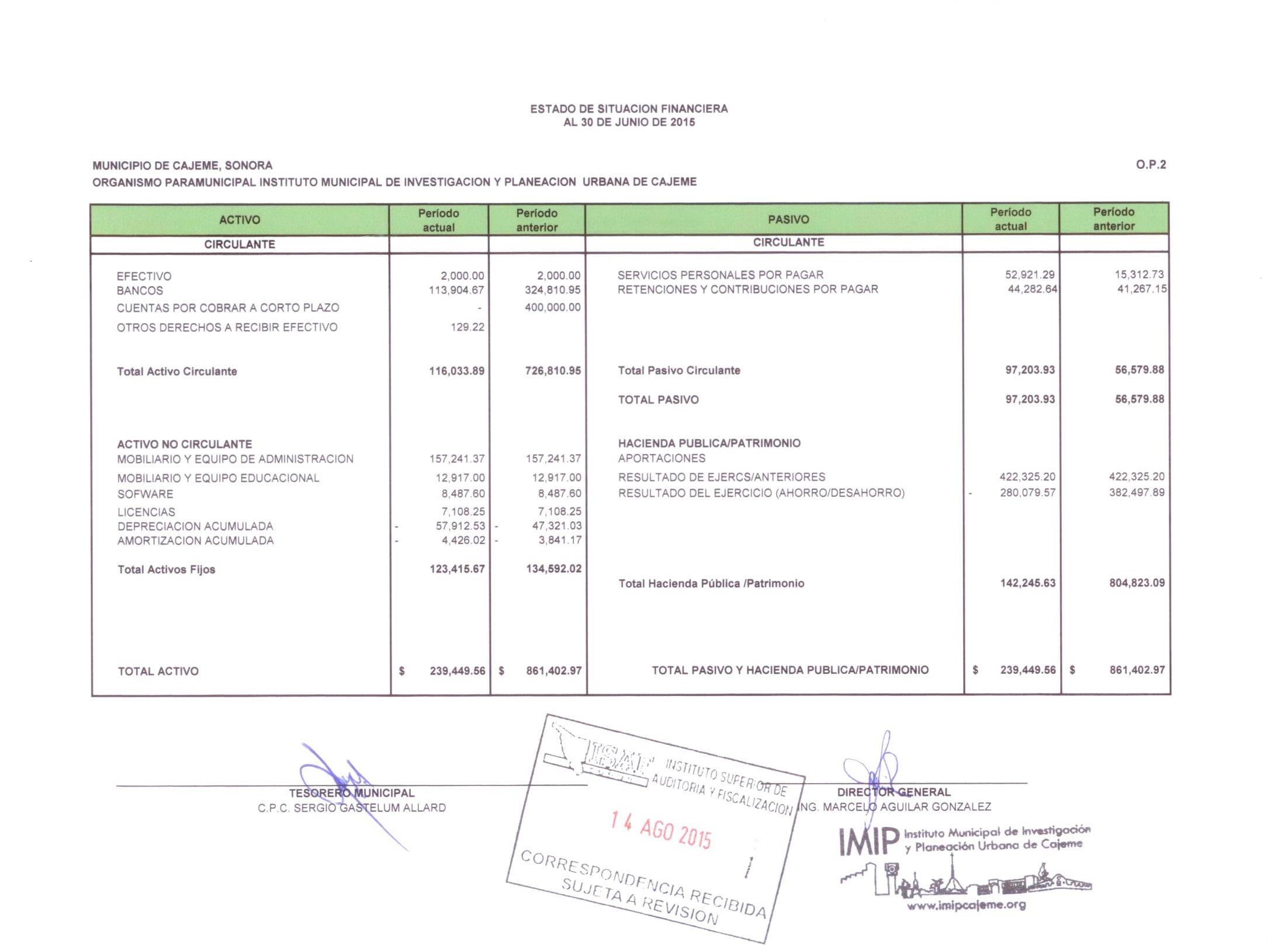 XII. Balance general y estados de resultados