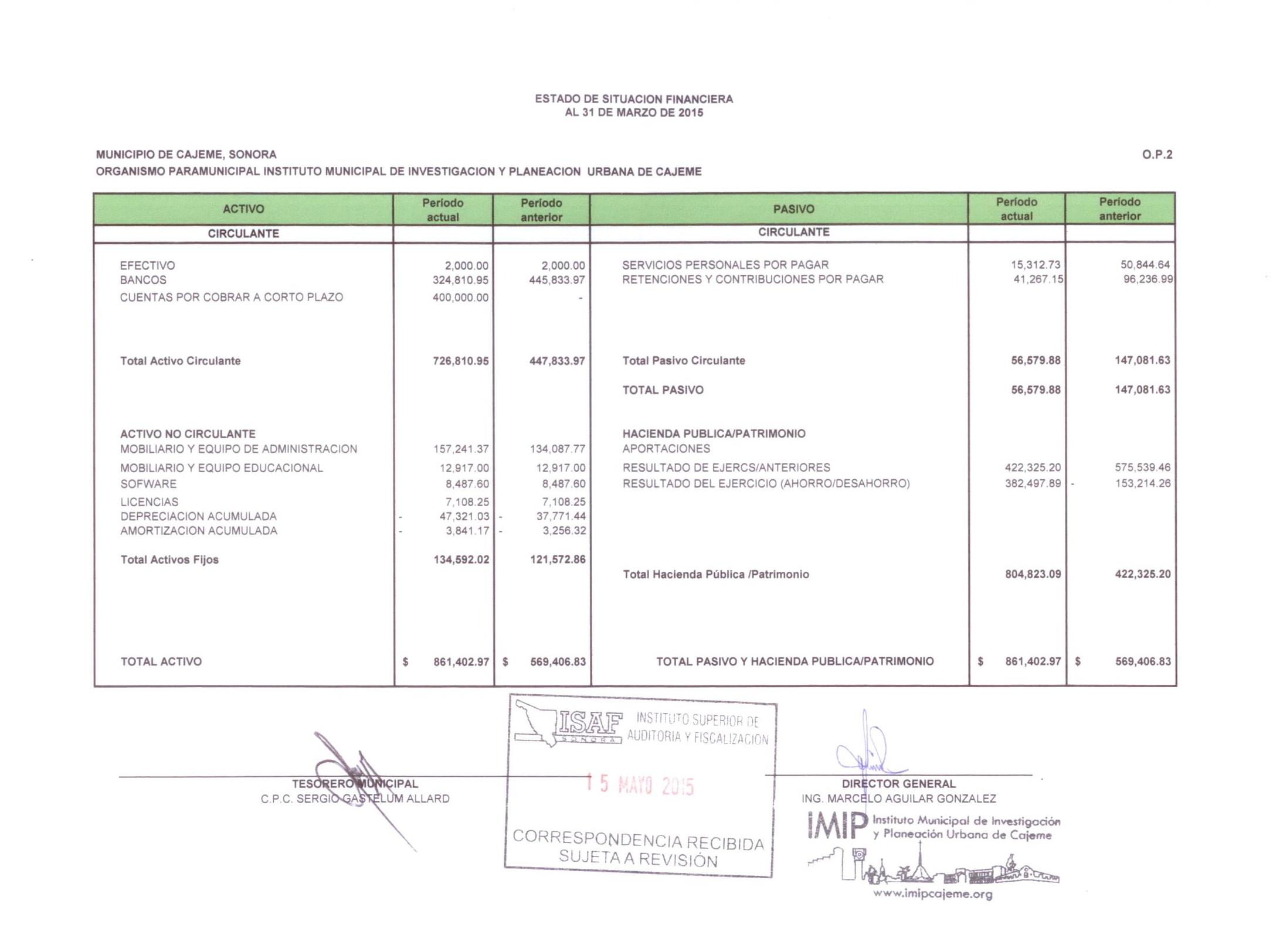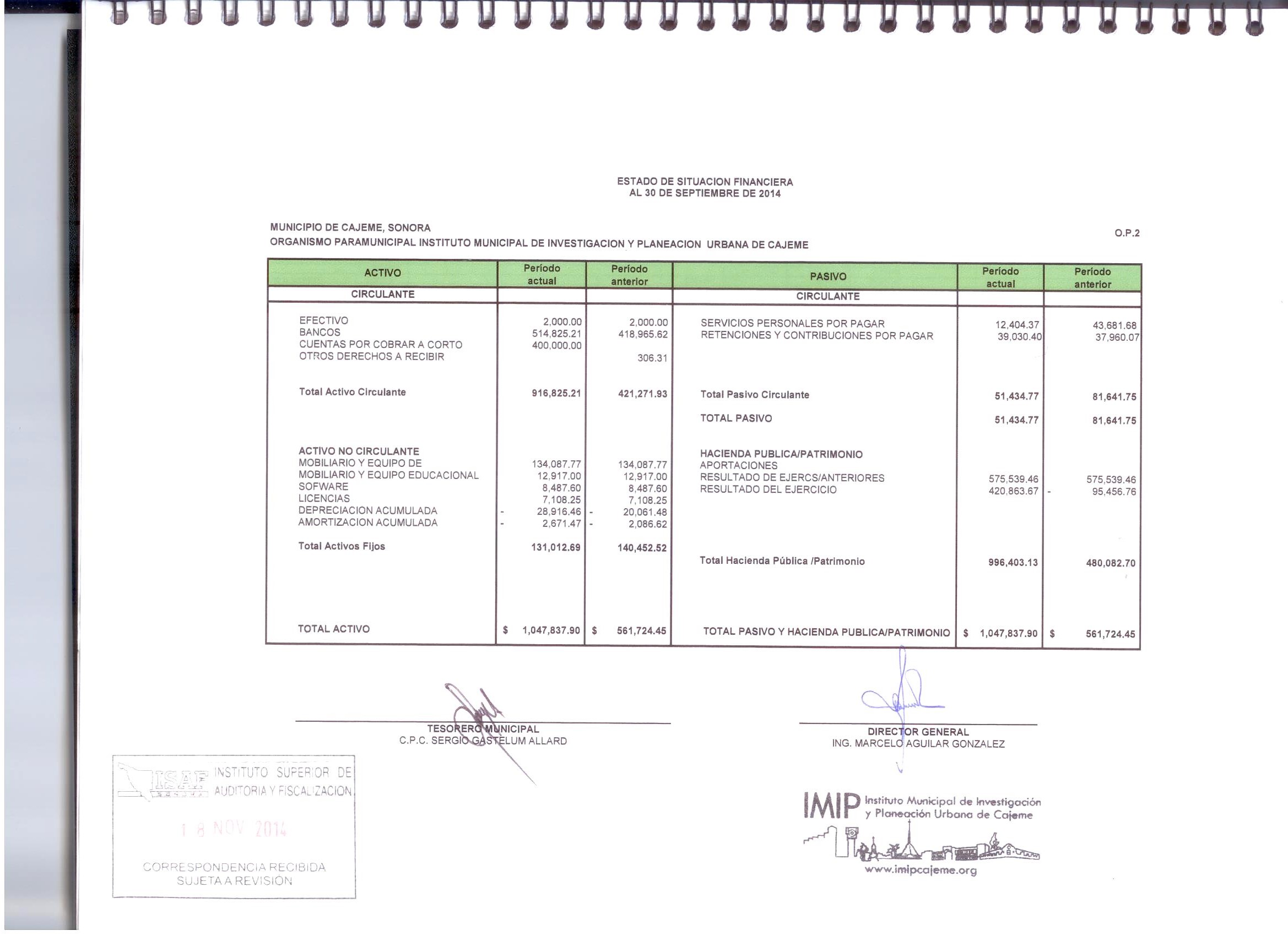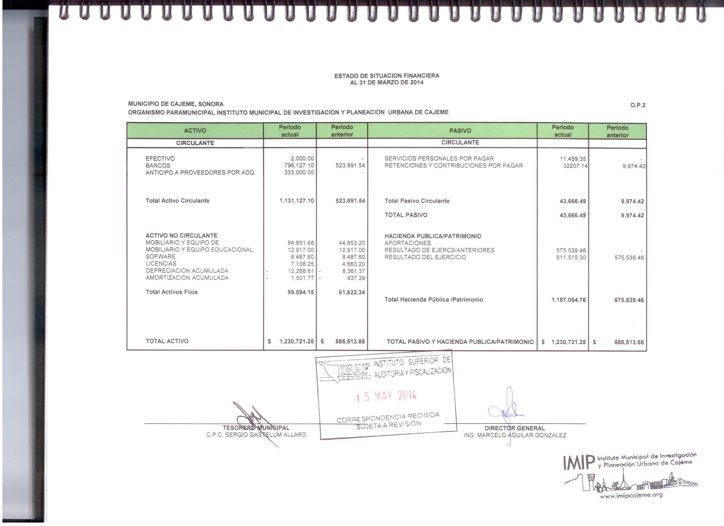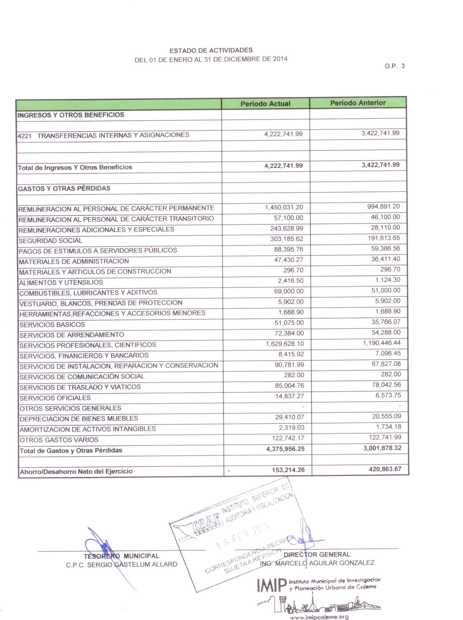 XII. Balance general y estados de resultados