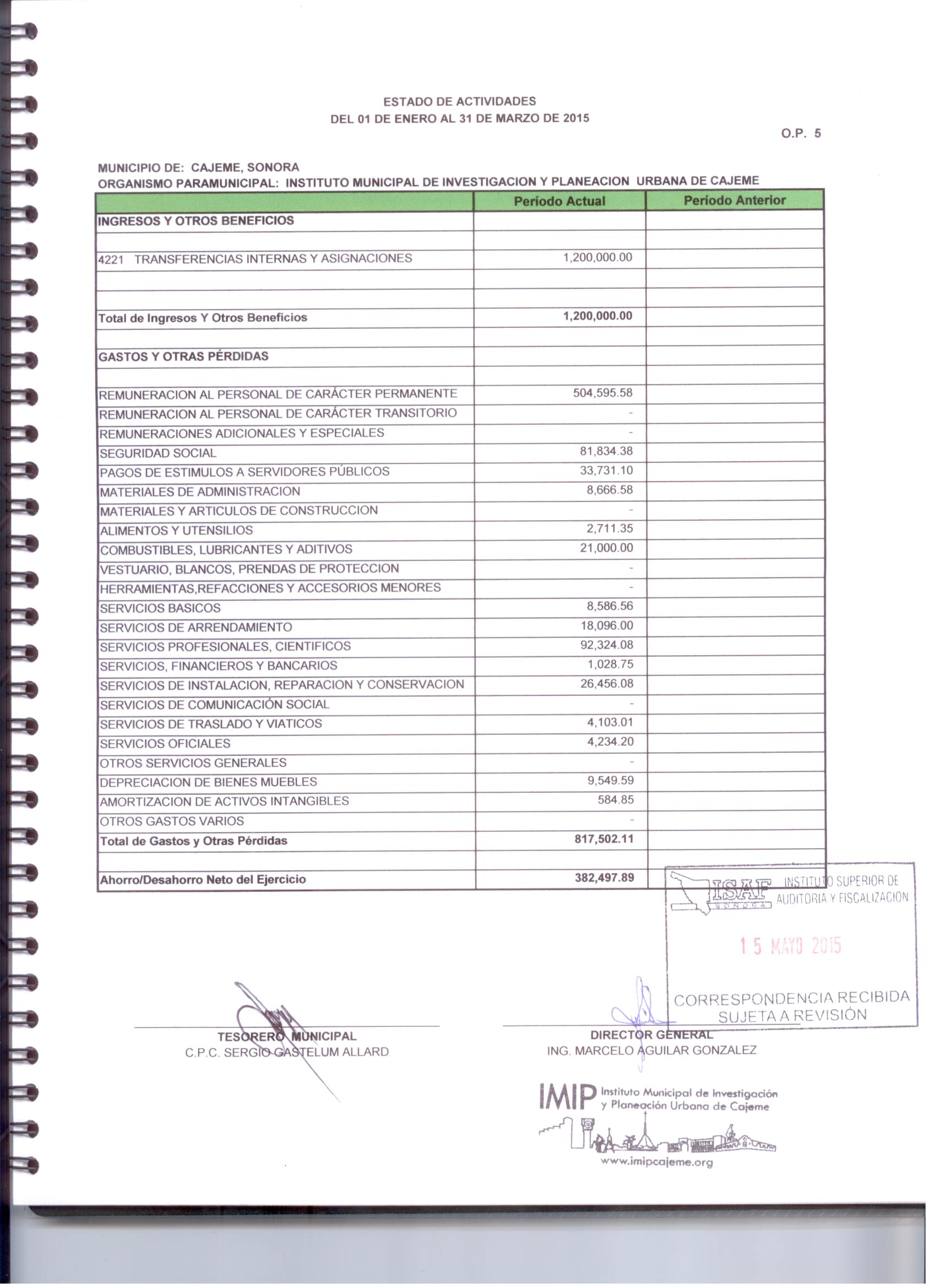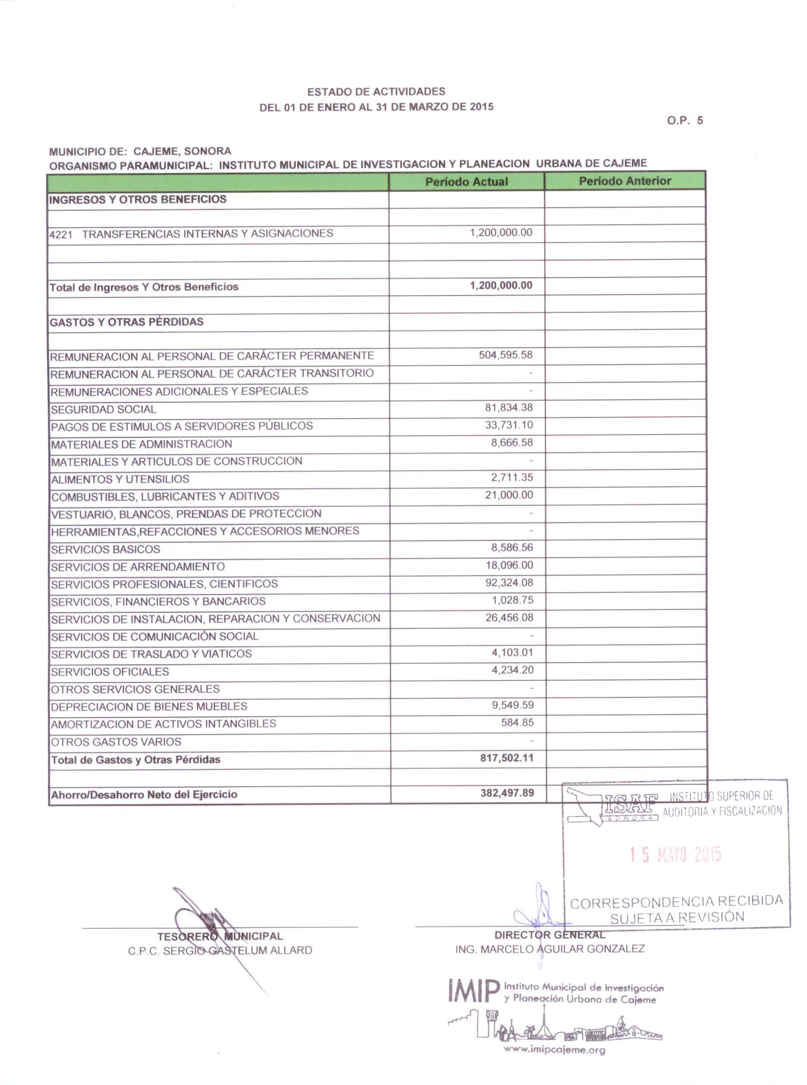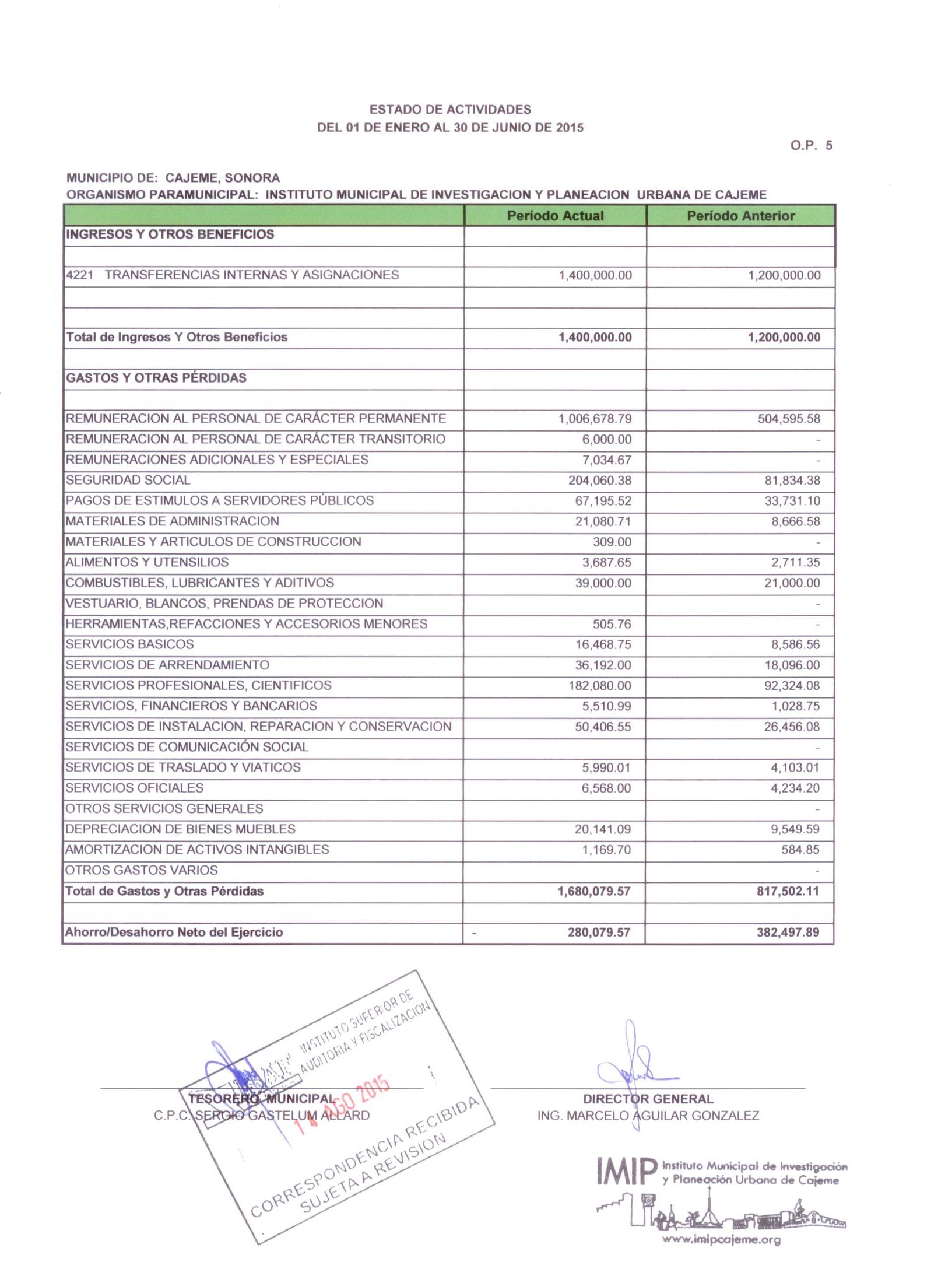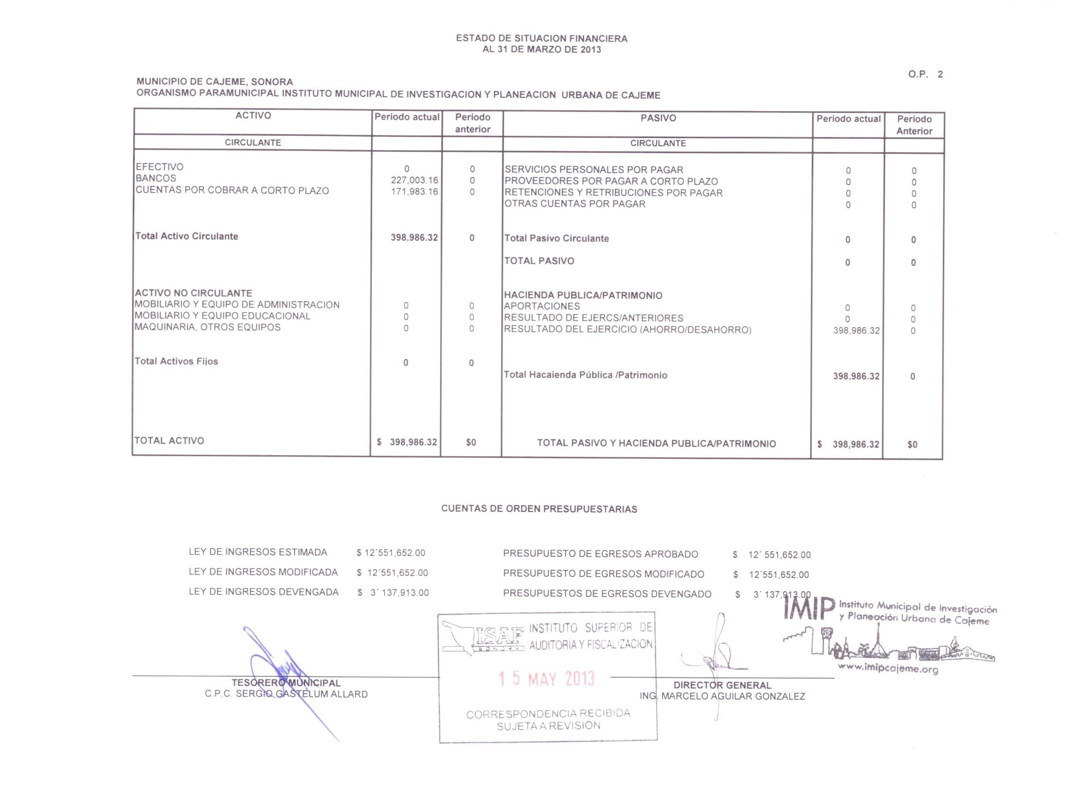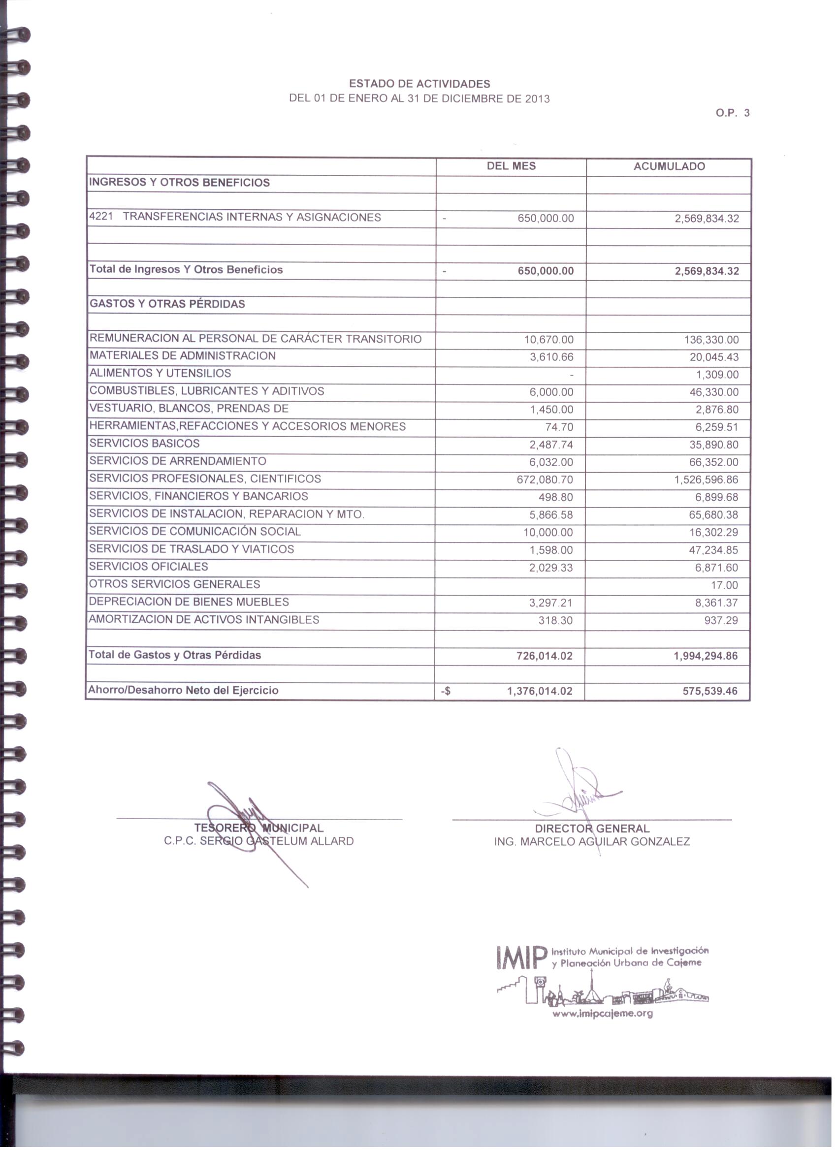 XII. Balance general y estados de resultados