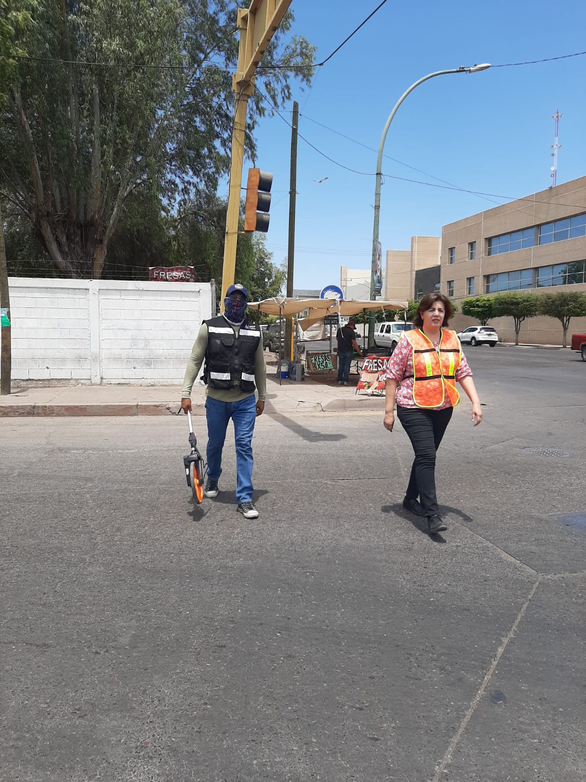 Con el objetivo de llevar a cabo la verificación física de las adecuaciones realizadas en el crucero de la calle Kino y Calzada Ostimuri, personal