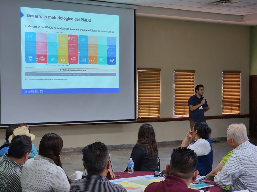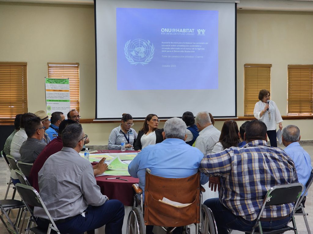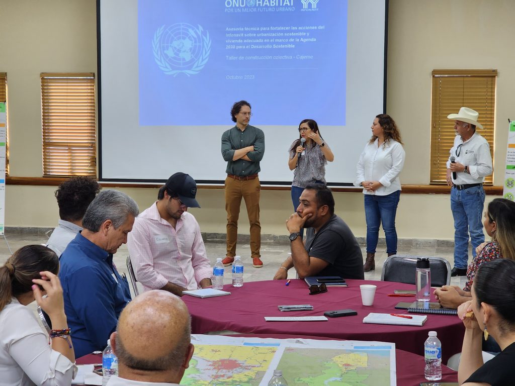 En el mes de Octubre, el Municipio de Cajeme recibió de nueva cuenta a personal de ONU – HÁBITAT e INFONAVIT dentro del marco de la realización del Programa Municipal de Desarrollo Urbano para el Municipio de Cajeme, con la finalidad de llevar a cabo actividades presenciales con autoridades gubernamentales, sector privado, academia y ciudadanía referentes a la fase 4 (objetivos), 5 (programación y 6 (zonificación) de la metodología de elaboración del documento.